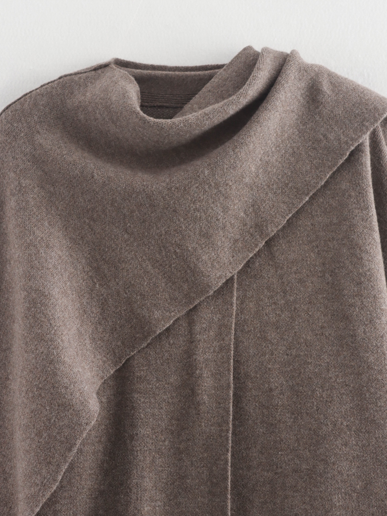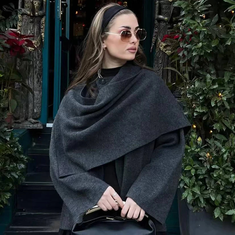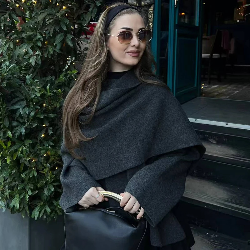 Asymmetrical Design: Unique scarf collar and asymmetrical hemline create a stylish, modern silhouette.
